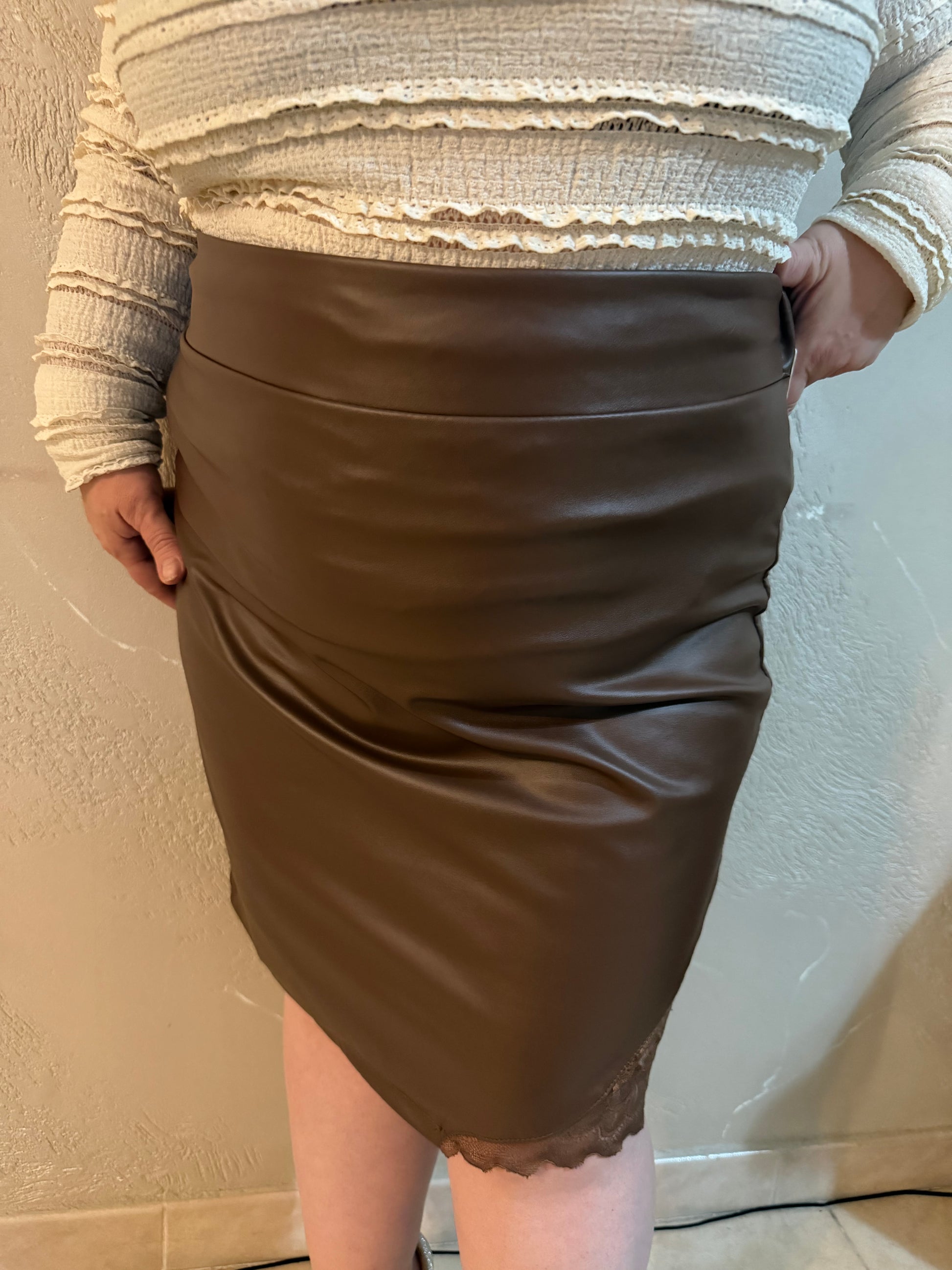 gonna di pelle con ricamo
