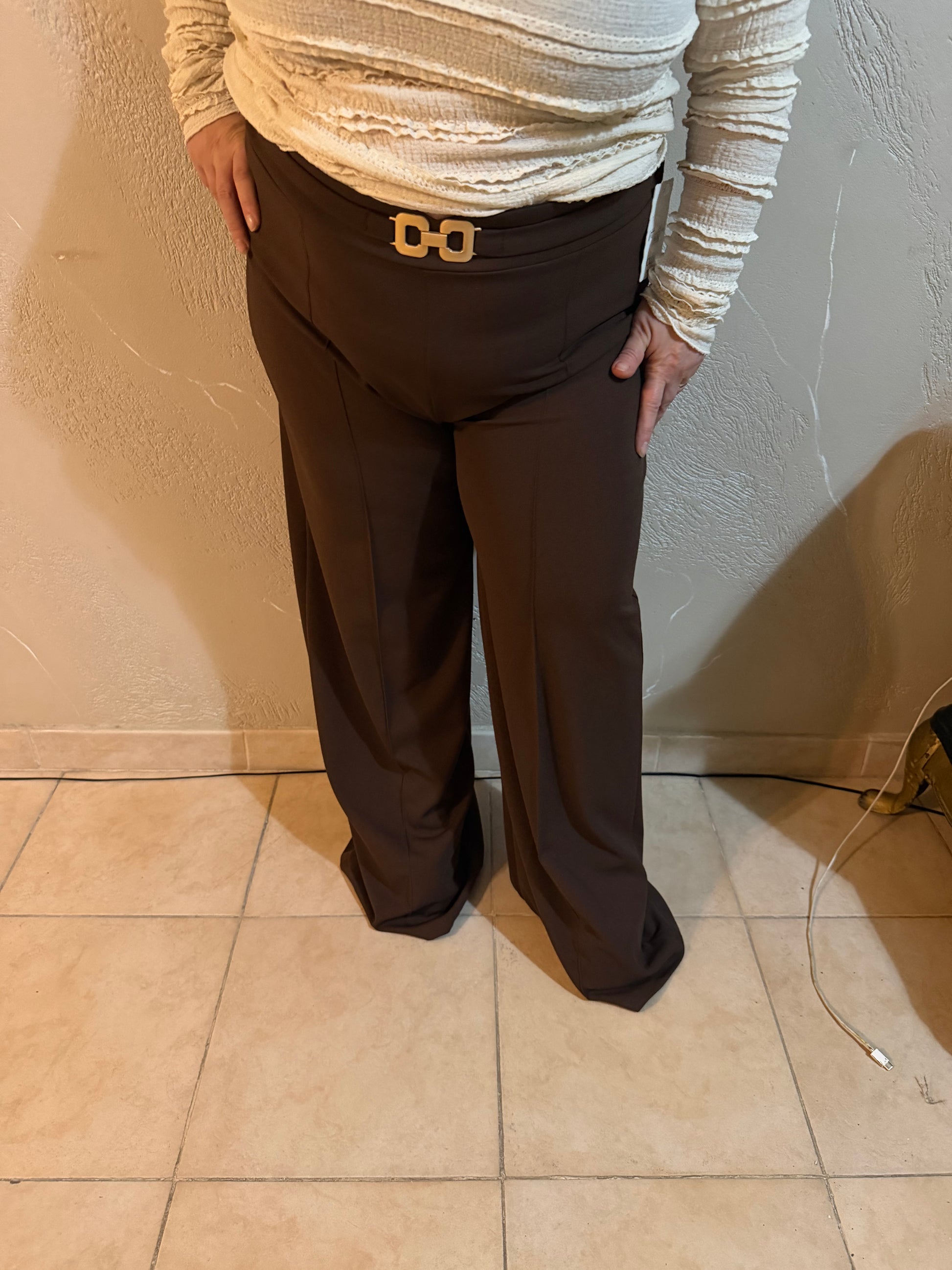 pantalone a zampa elegante con cintura