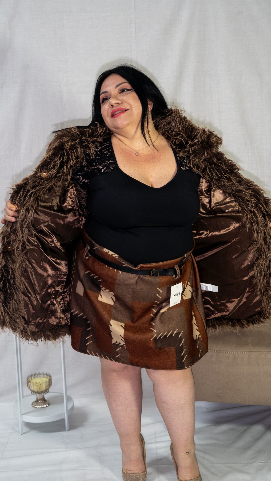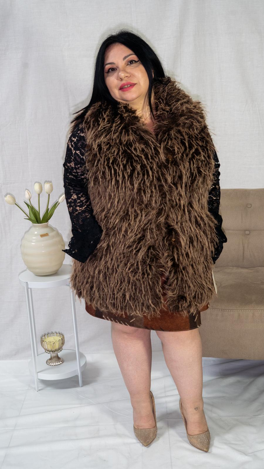 Aggiungi un tocco di lusso al tuo guardaroba con questo smanicato pelliccioso curvy, perfetto per affrontare le giornate più fredde con stile. Il morbido tessuto pelliccioso ti avvolge in un caldo abbraccio, mentre le chiusure a ciappette aggiungono un dettaglio elegante e funzionale, per un look sofisticato e pratico allo stesso tempo.